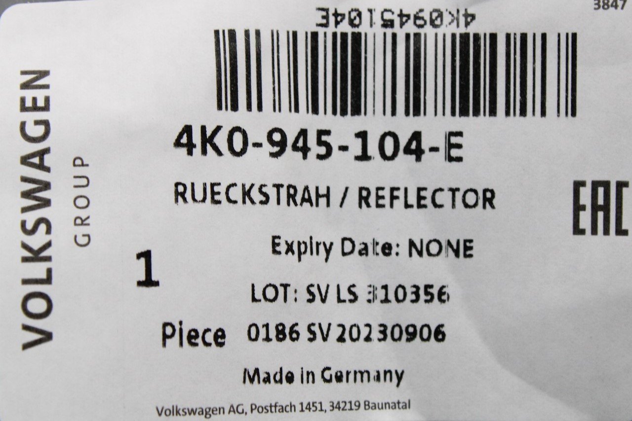 Audi A6 2019-on bumper rear reflector lens (right, inner) 4K0945104E