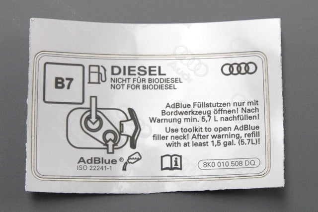 Audi A6 A7 2015-2018 diesel AdBlue information sticker 8K0010508DQ