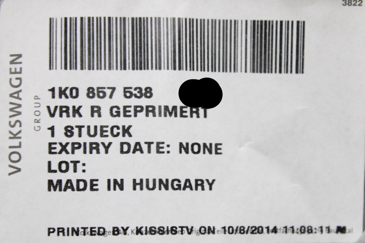 Part Number 1K0857538 A7W
