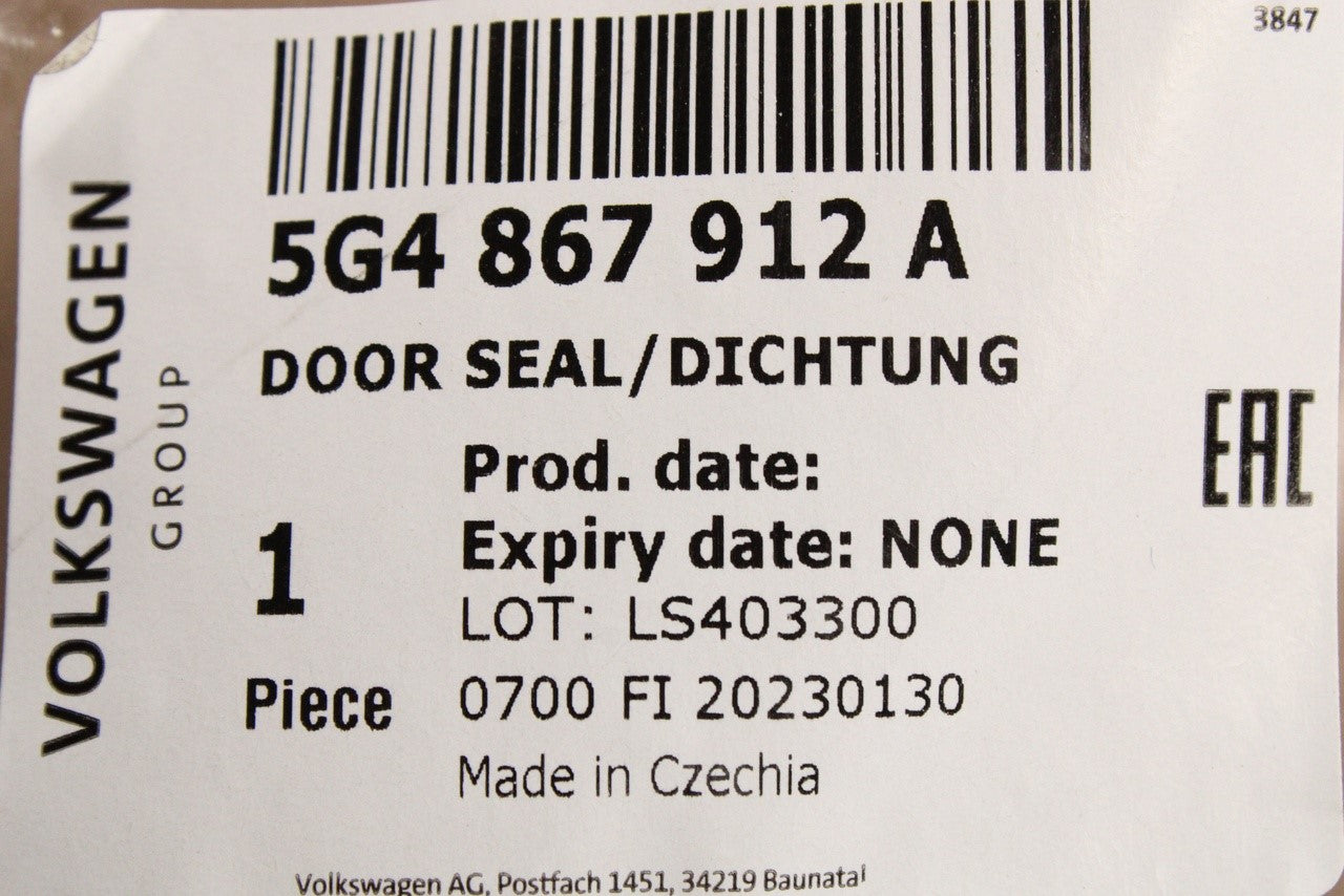 VW Golf MK7 MK7.5 13-21 5 door front inner door seal (right) 5G4867912A