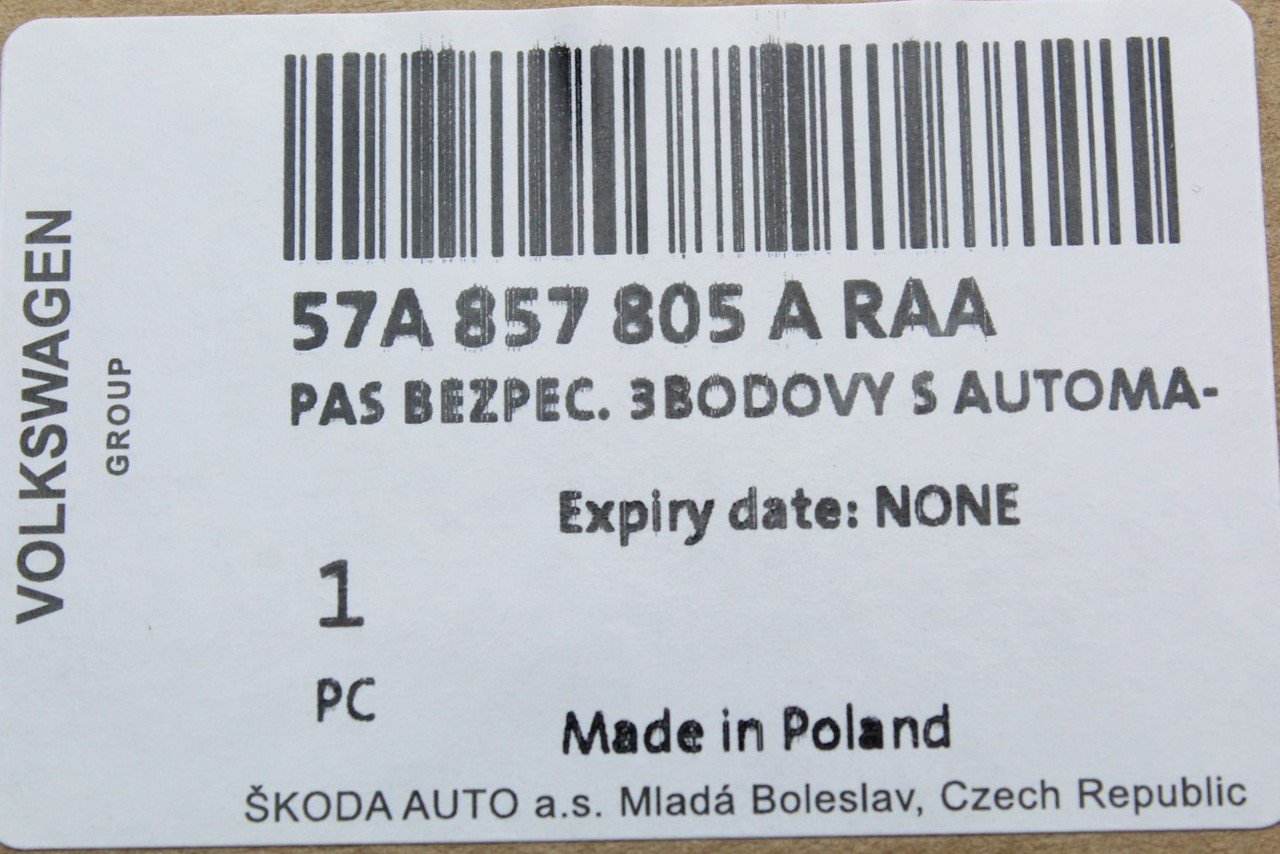 Skoda Karoq 2018- Rear three point seat belt with tensioner 57A857805A RAA