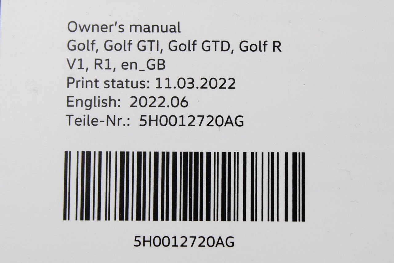 VW Golf, Golf GTI, Golf GTD, Golf R owners manual (06.2022) 5H0012720AG is backordered and will ship as soon as it is back in stock.