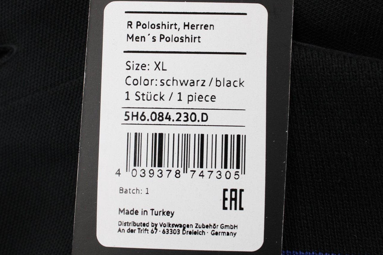 VW Golf Tiguan Touareg Arteon R polo shirt men's XL Black 5H6084230D