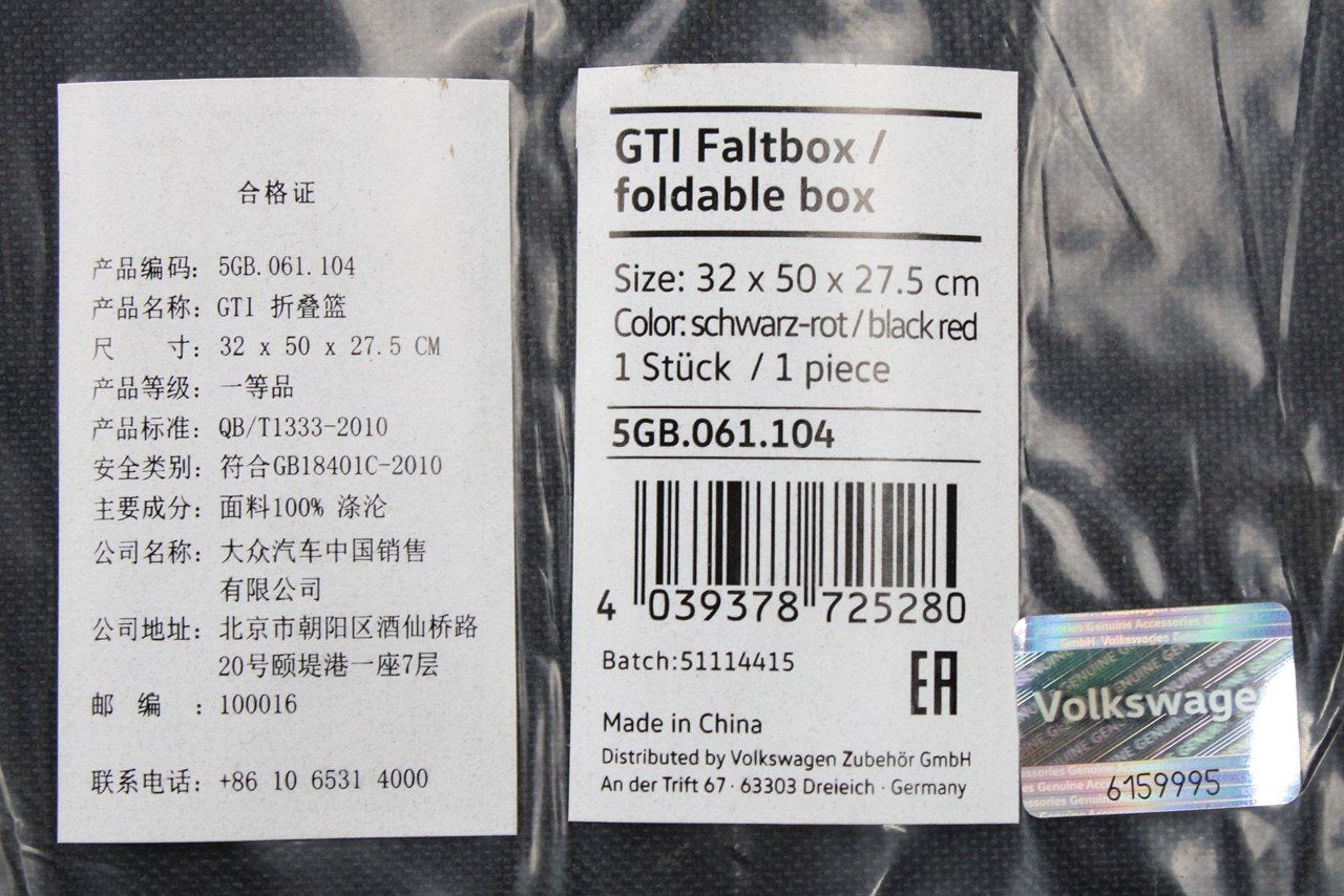 VW GTI accessory portable folding box (black/clark tartan) 5GB061104 is backordered and will ship as soon as it is back in stock.