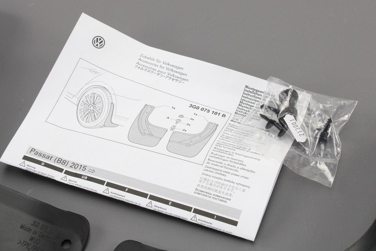 VW Passat B8 2015-on accessory mud flaps set (rear) 3G0075101B is backordered and will ship as soon as it is back in stock.
