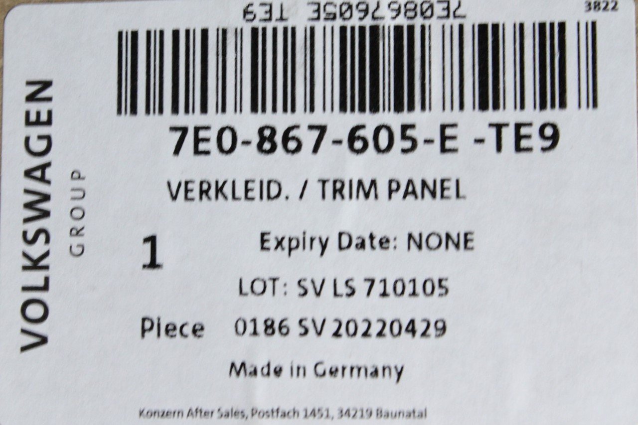 Part Number 7E0867605E TE9