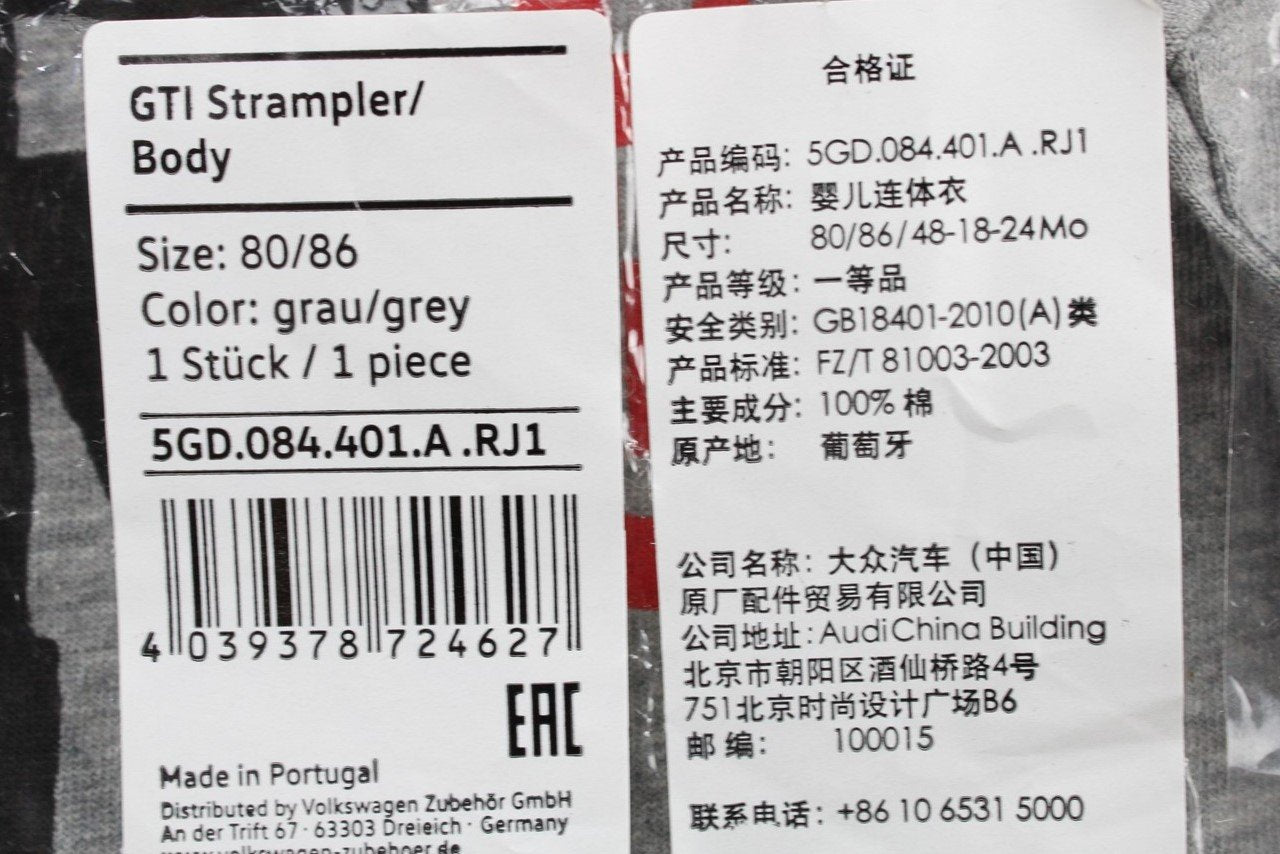 VW Volkswagen Golf GTI babygrow romper grey (9-12months) 5GD084401A RJ1