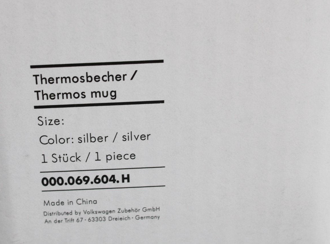 VW Volkswagen stainless steel thermal mug 000069604H