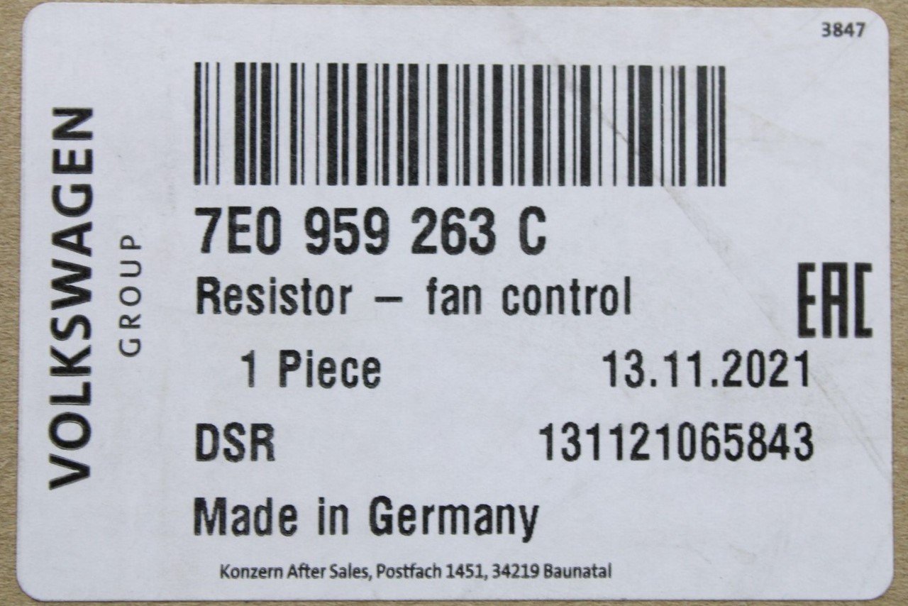 VW Transporter T5.1 12-15 Amarok heater fan series resistor 7E0959263C