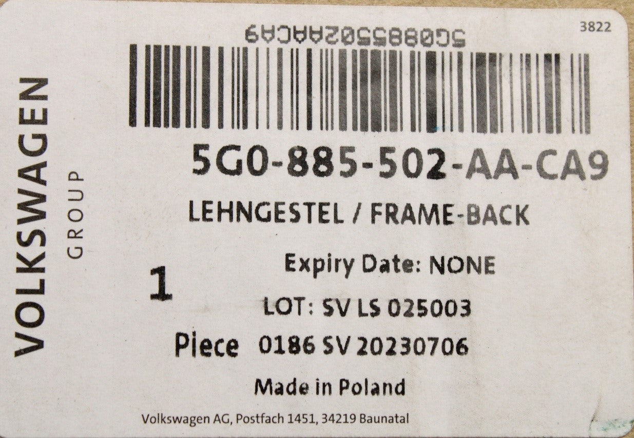 VW Arteon T-Roc 2017-on seat backrest frame (rear right) 5G0885502AA CA9