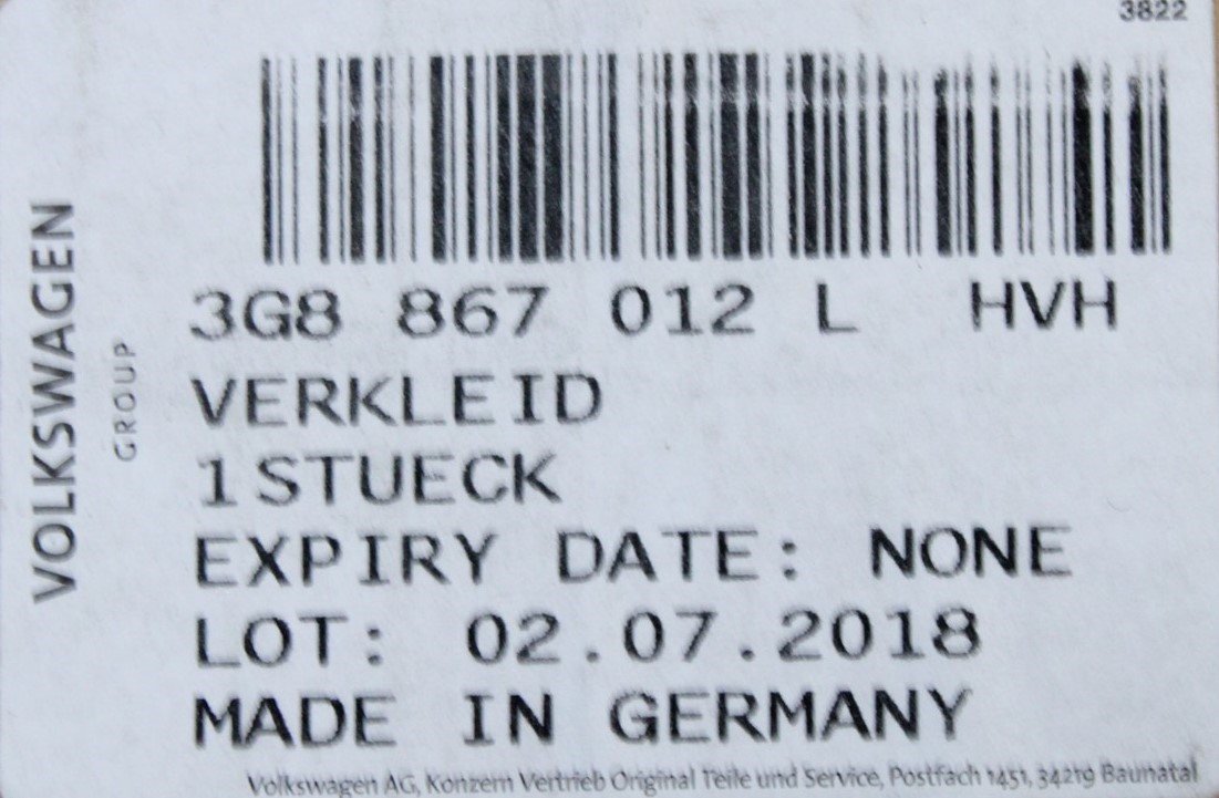 Part Number: 3G8867012L HVH
