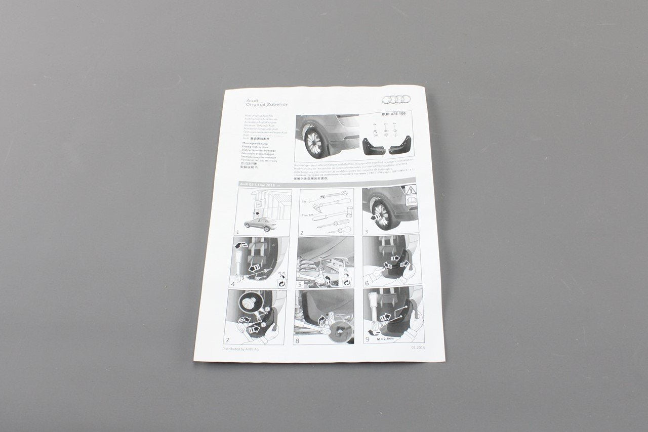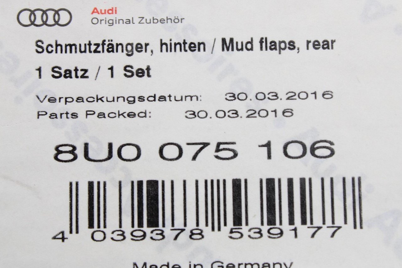 Audi Q3 S-line 2015-18 rear mud flaps with fittings 8U0075106 is backordered and will ship as soon as it is back in stock.