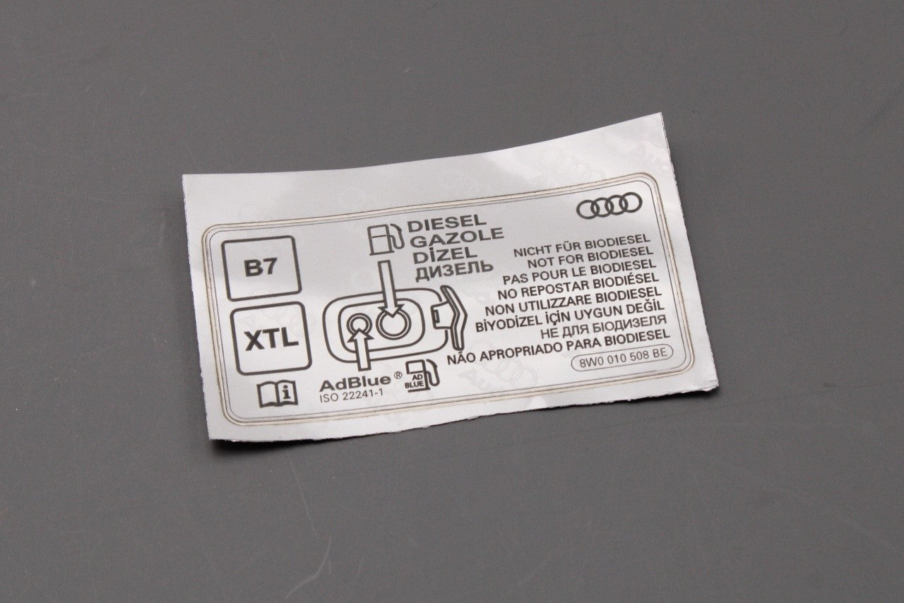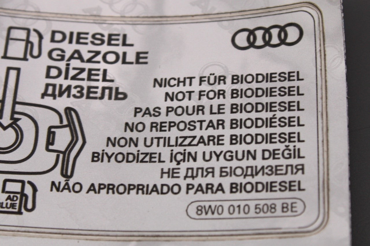Audi A5 A6 A7 A8 Q3 diesel and adblue warning sticker 8W0010508BE