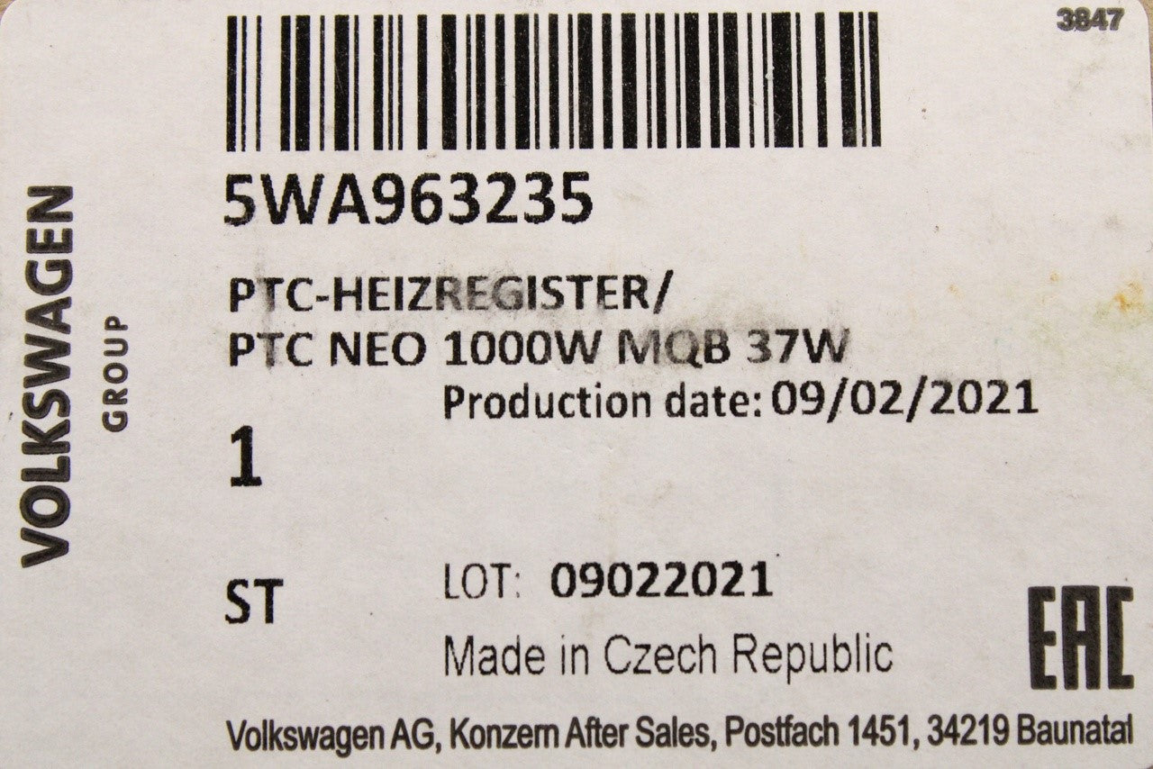 Audi A3 Q2 TT RS3 VW Golf Passat auxiliary air heat element 5WA963235