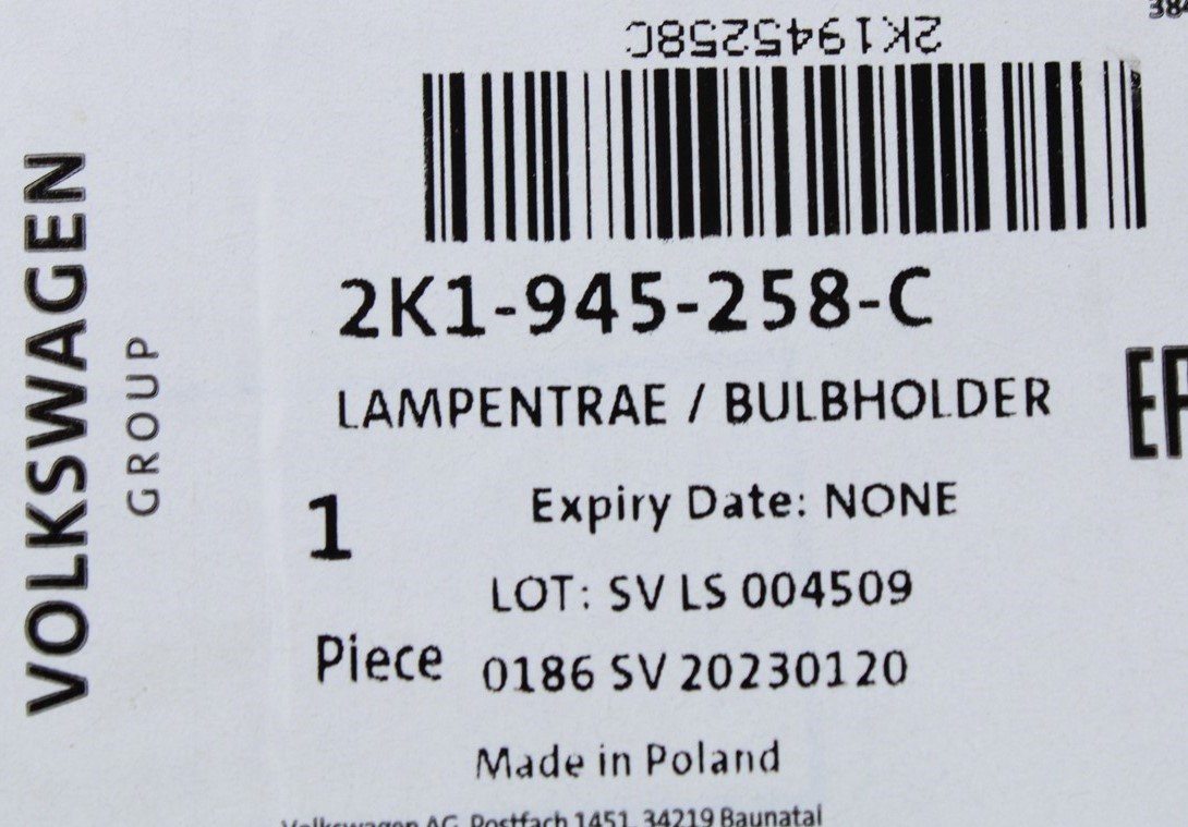 VW Caddy 2016-20 rear light bulb holder carrier (right) 2K1945258C