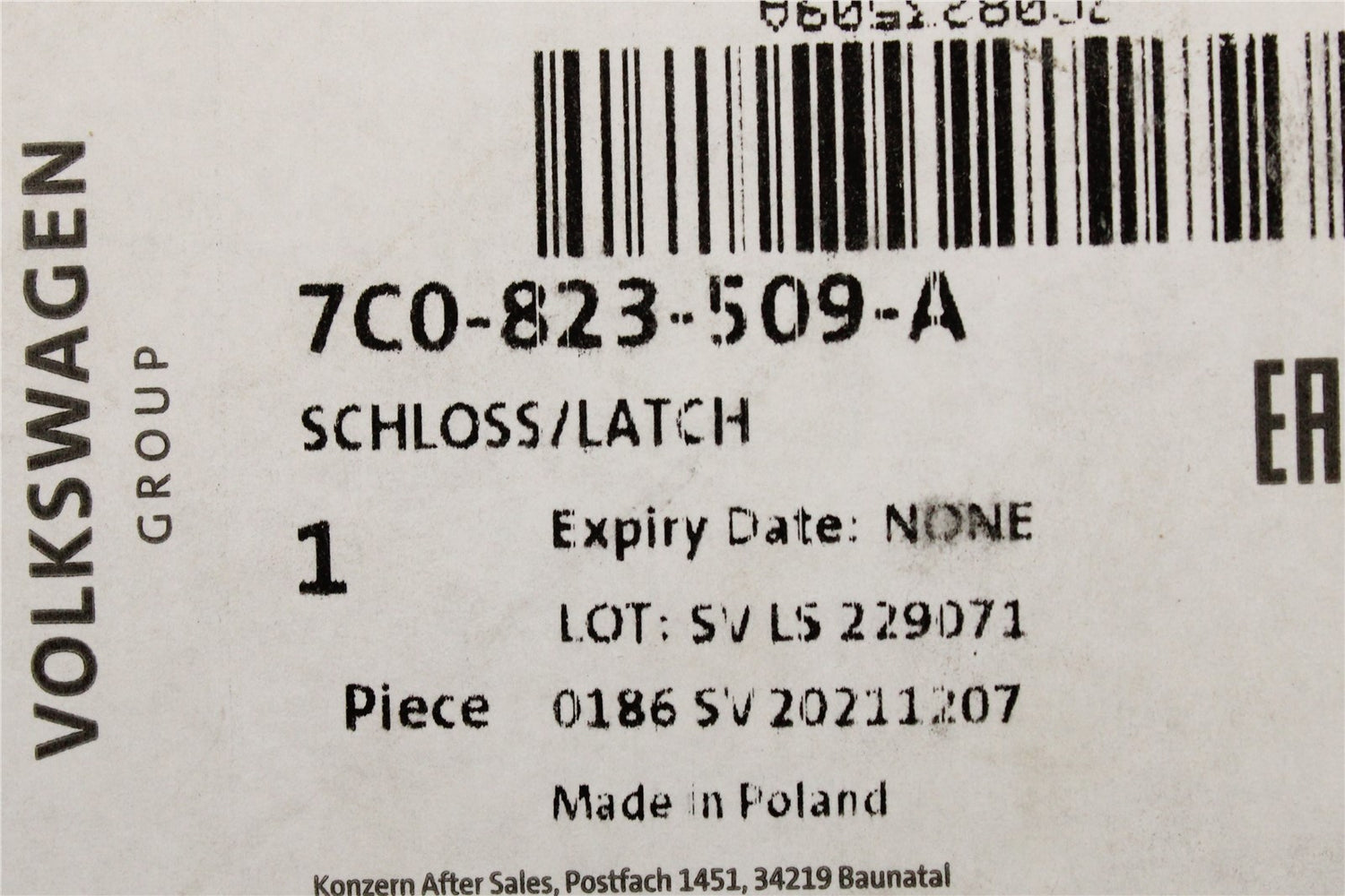 Part Number 7C0823509A