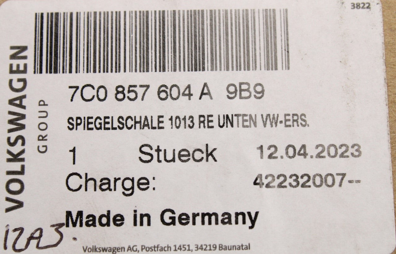 VW Crafter 2017-on wing mirror cover (lower right) 7C0857604A 9B9 is backordered and will ship as soon as it is back in stock.