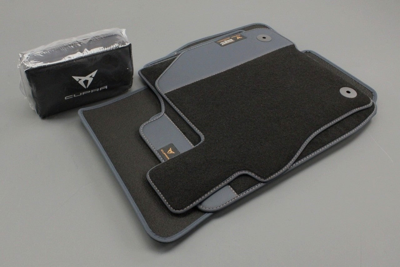 CUPRA Formentor 2021-on front & rear petrol blue floor mats with safety kit 5FH093990E