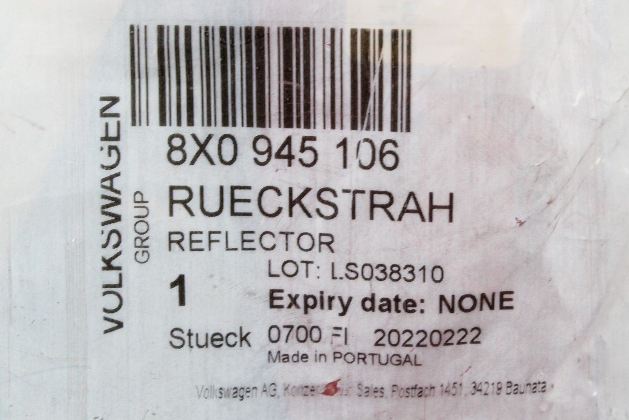 Audi A1 2011-2014 rear bumper reflector lens (right) 8X0945106