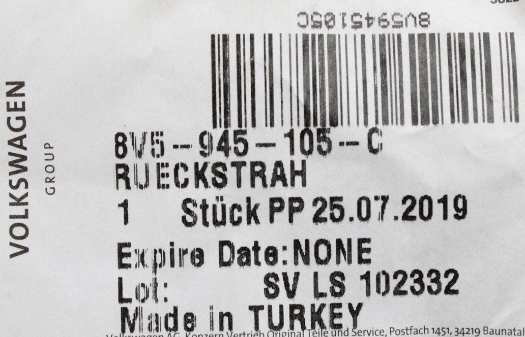 Audi A3 Saloon 2017-20 Rear standard bumper reflector (left) 8V5945105C is backordered and will ship as soon as it is back in stock.