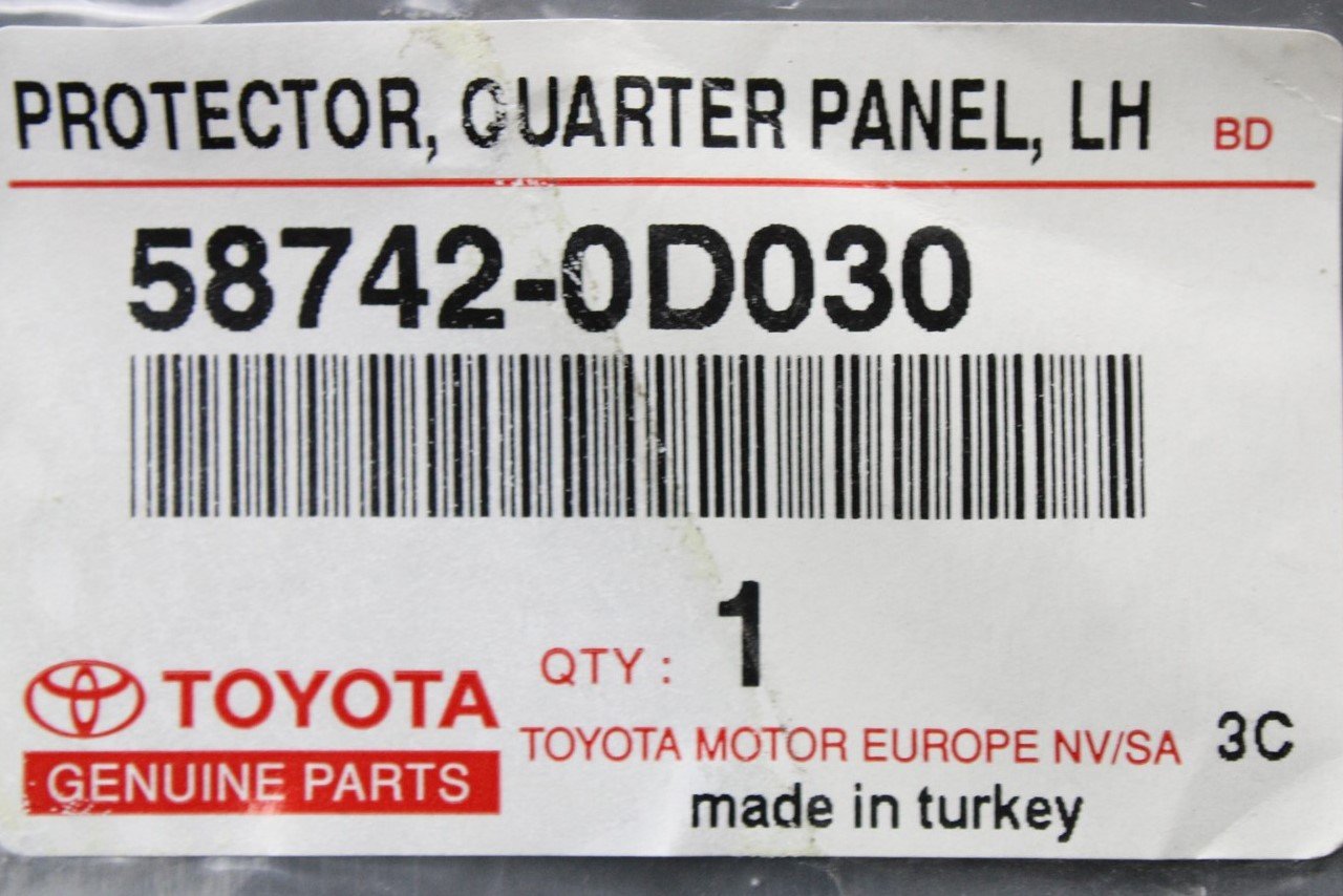 Toyota quarter panel protector (left) 58742-0D030 is backordered and will ship as soon as it is back in stock.