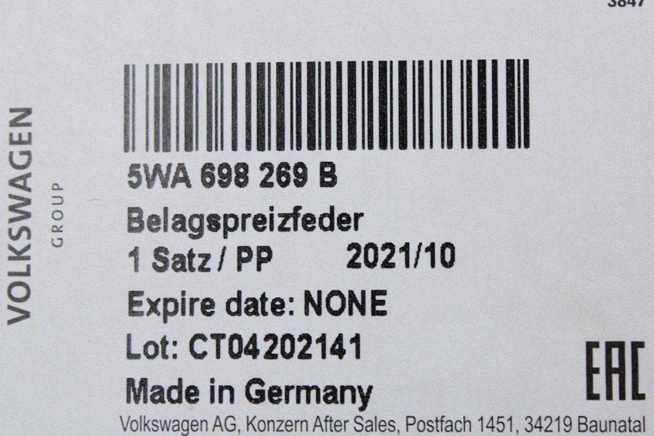 VW Audi Skoda SEAT brake pad retaining springs 5WA698269B