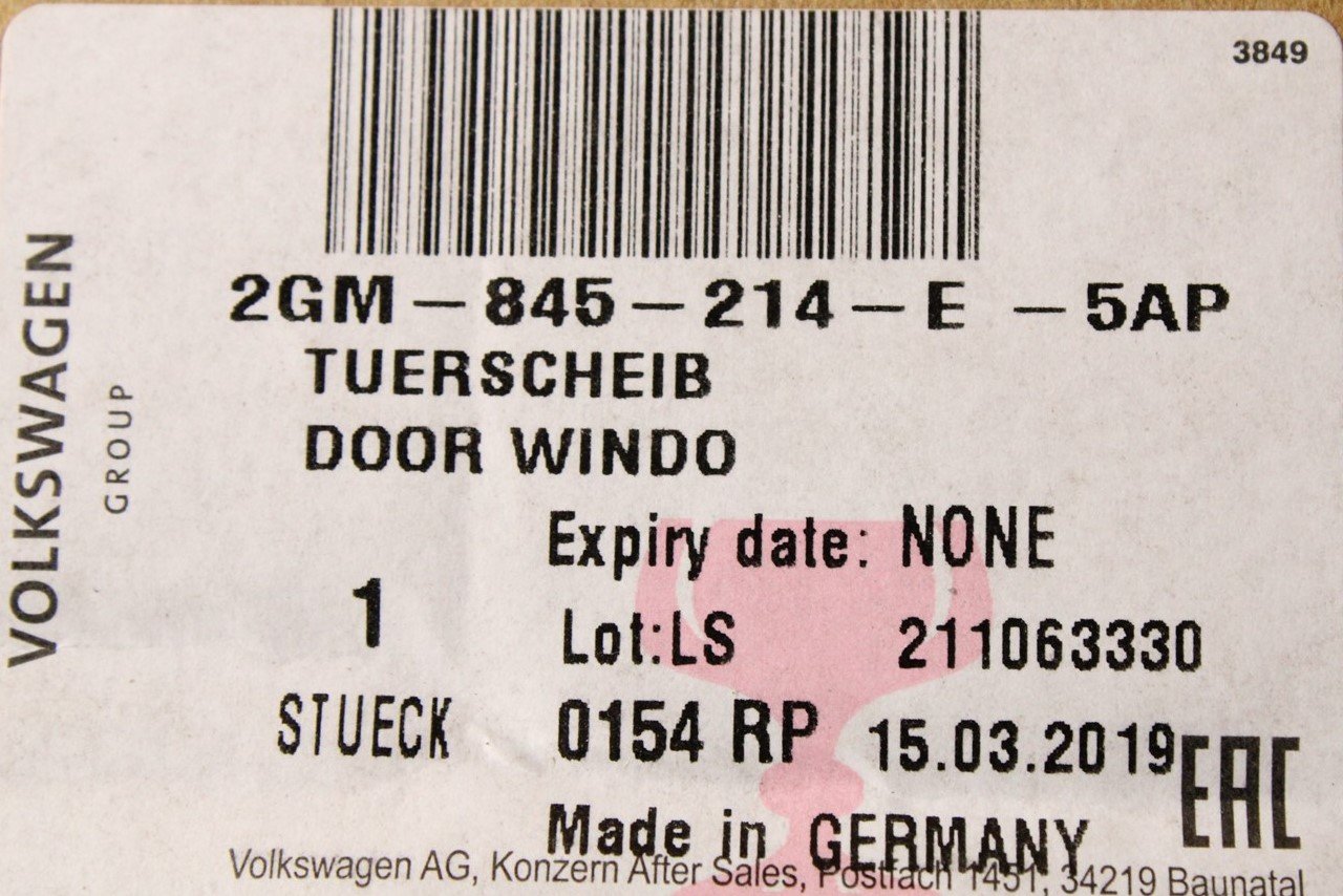 VW T-Cross 2019- fixed door window glass (right rear) 2GM845214E 5AP is backordered and will ship as soon as it is back in stock.
