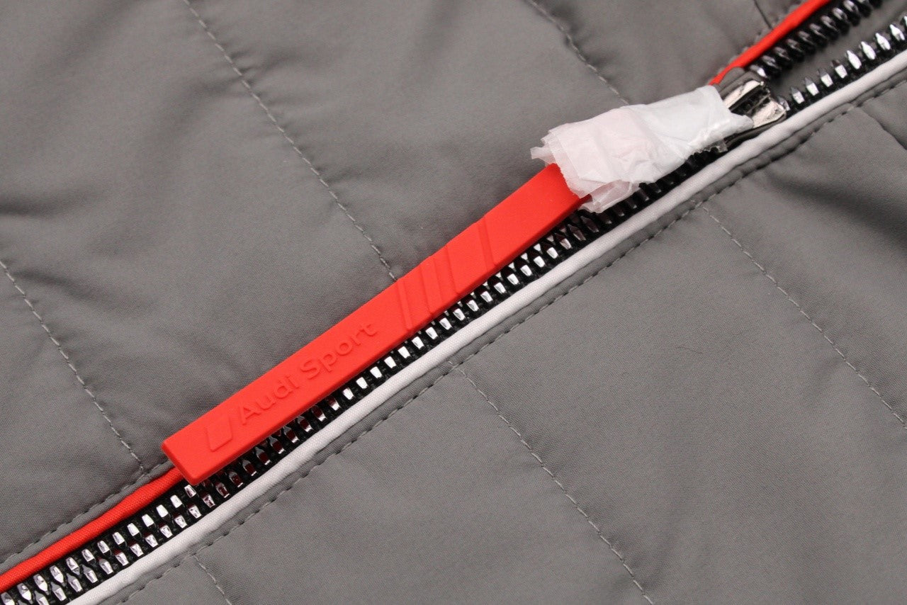 • Audi rings on the inside of the neck label Audi Sport logo on the zipper pull and on the piping on the sleeve cuffs