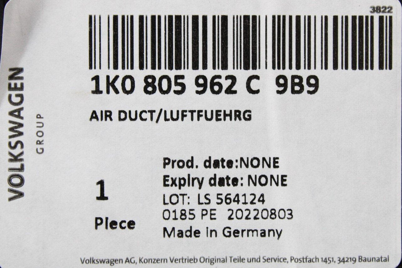 VW Audi Skoda SEAT 1.6 2.0 air intake duct 1K0805962C 9B9