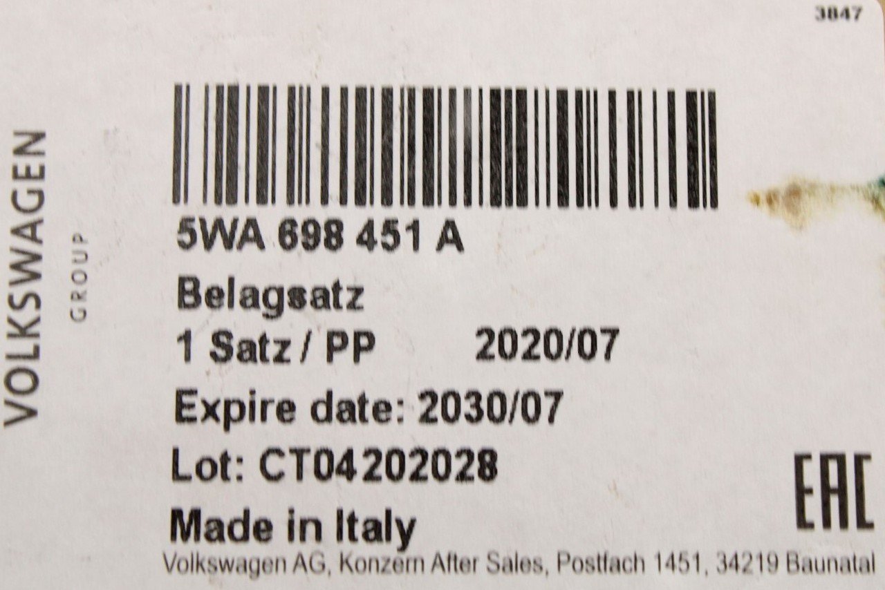 VW MK8 Golf Audi A3 Skoda Octavia SEAT rear brake pads set 5WA698451A is backordered and will ship as soon as it is back in stock.