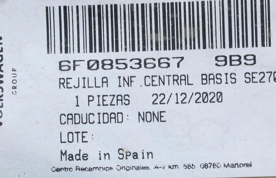 SEAT Ibiza 6F 2018-on centre lower front bumper grille 6F0853667 9B9