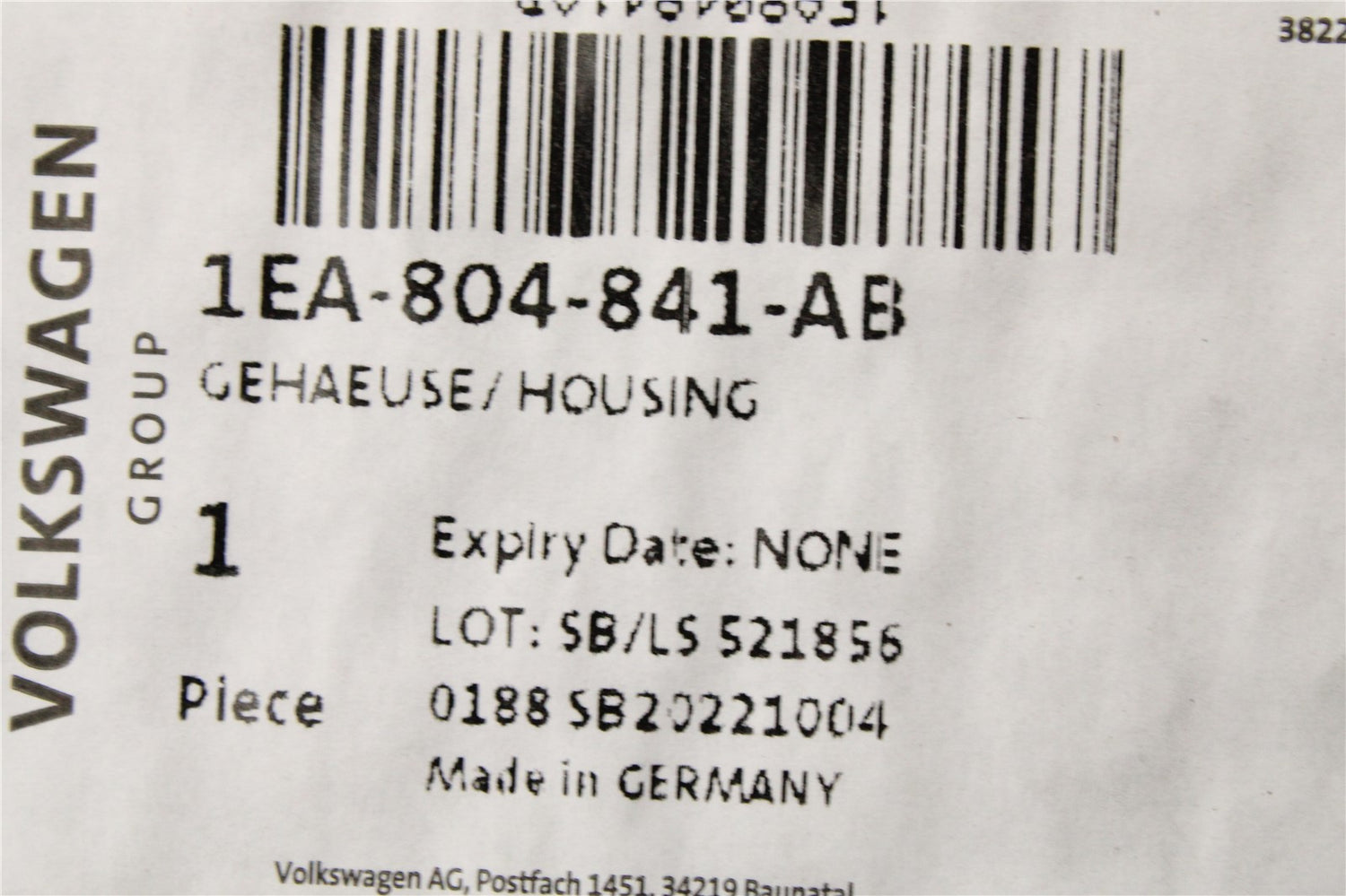 Part Number 1EA804841M / 1EA804841P / 1EA804841AB