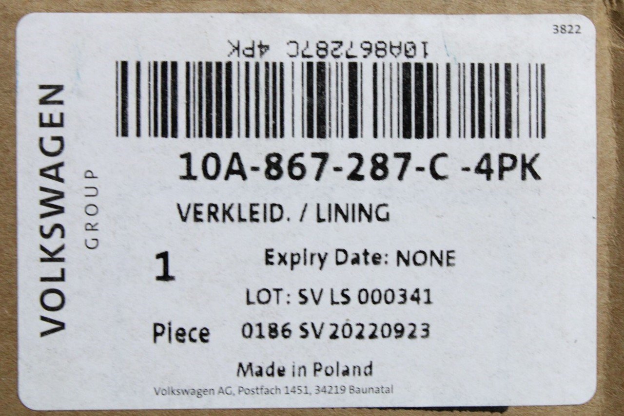 VW ID.3 2020-on C pillar trim black (upper left) 10A867287C 4PK is backordered and will ship as soon as it is back in stock.