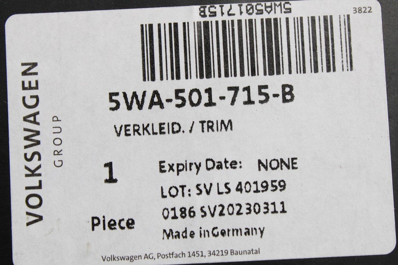 VW Golf MK8 Audi A3 Skoda SEAT Leon 2020- trim for rear axle 5WA501715B is backordered and will ship as soon as it is back in stock.
