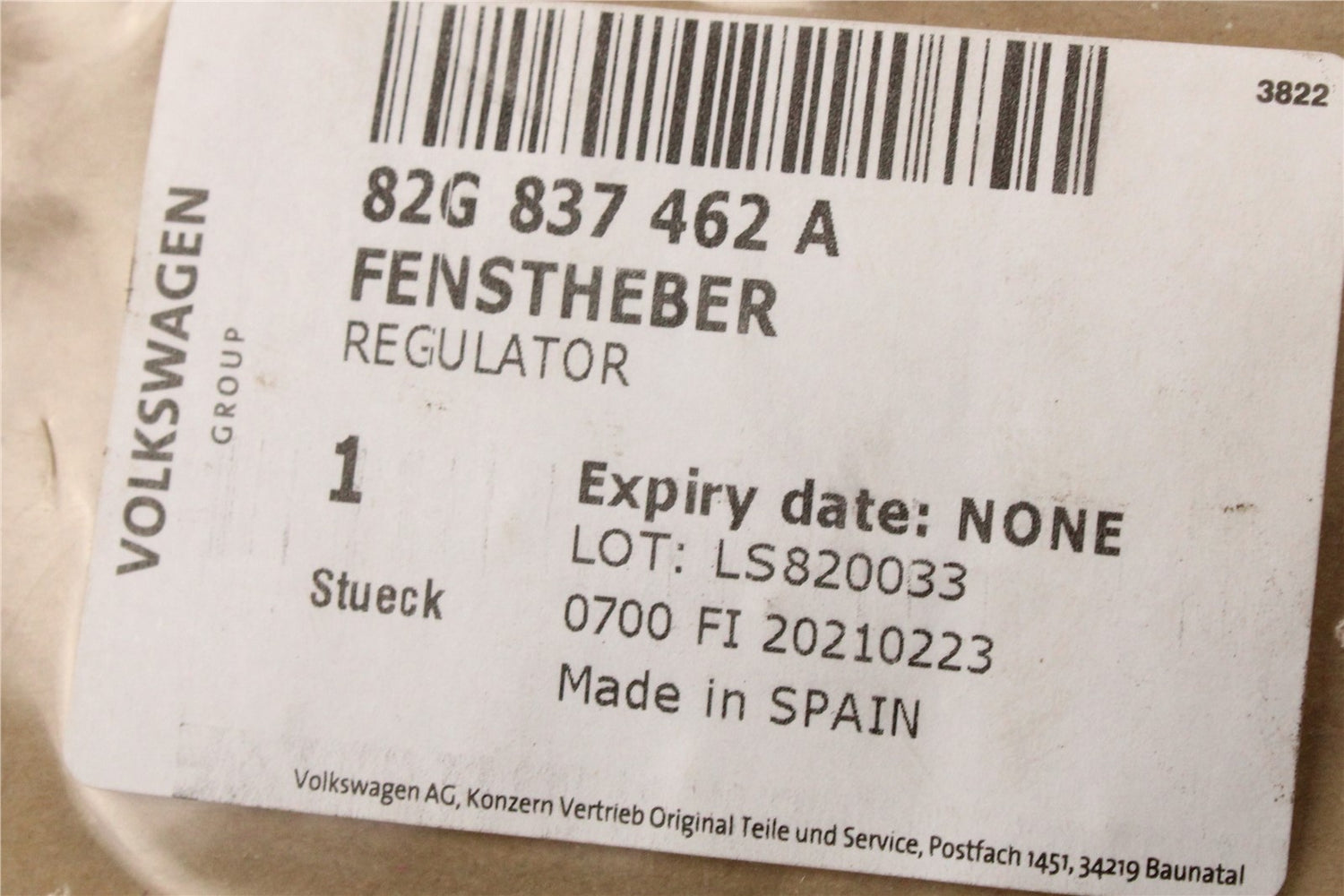 Audi A1 2019-on window regulator (front right) 82G837462A is backordered and will ship as soon as it is back in stock.