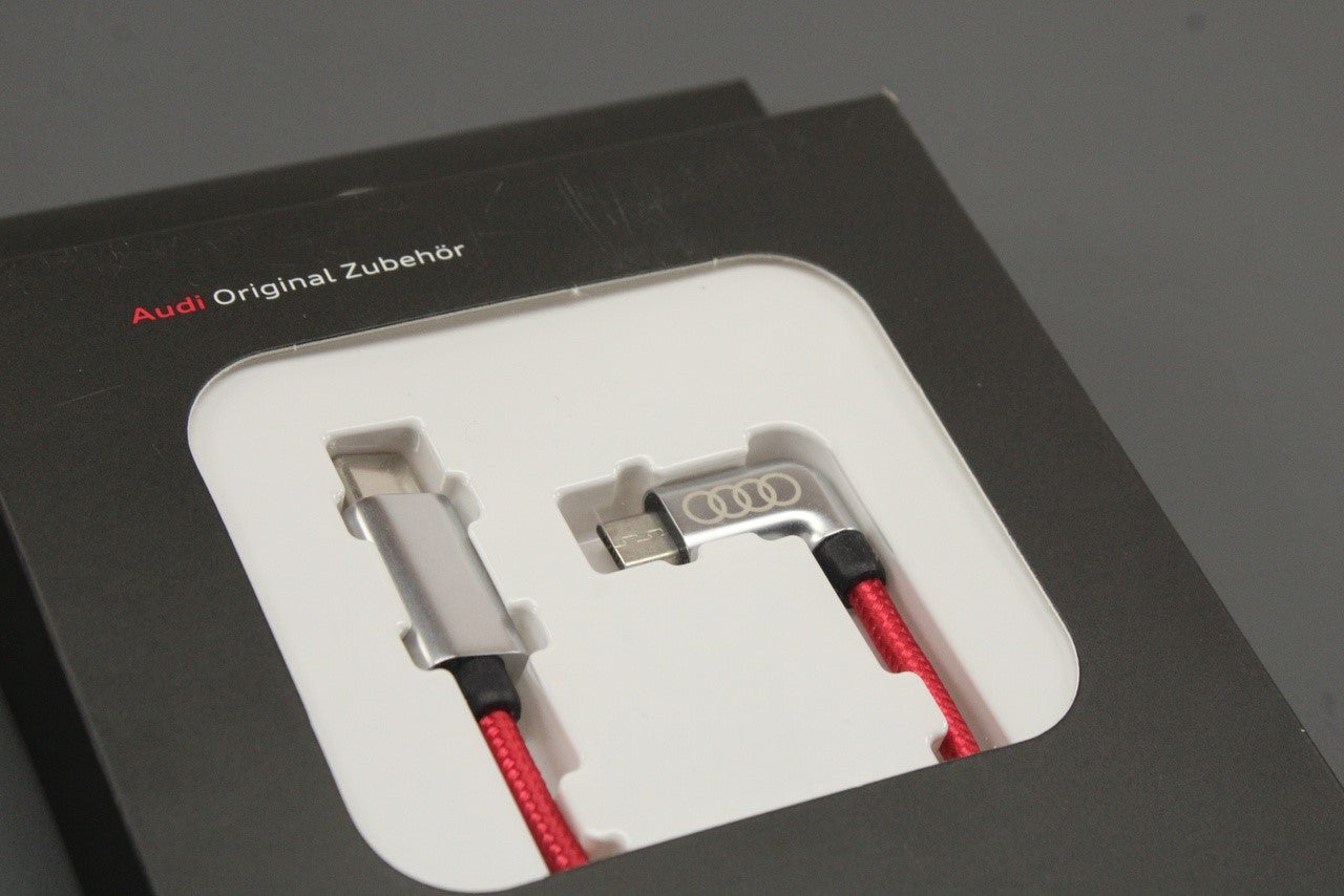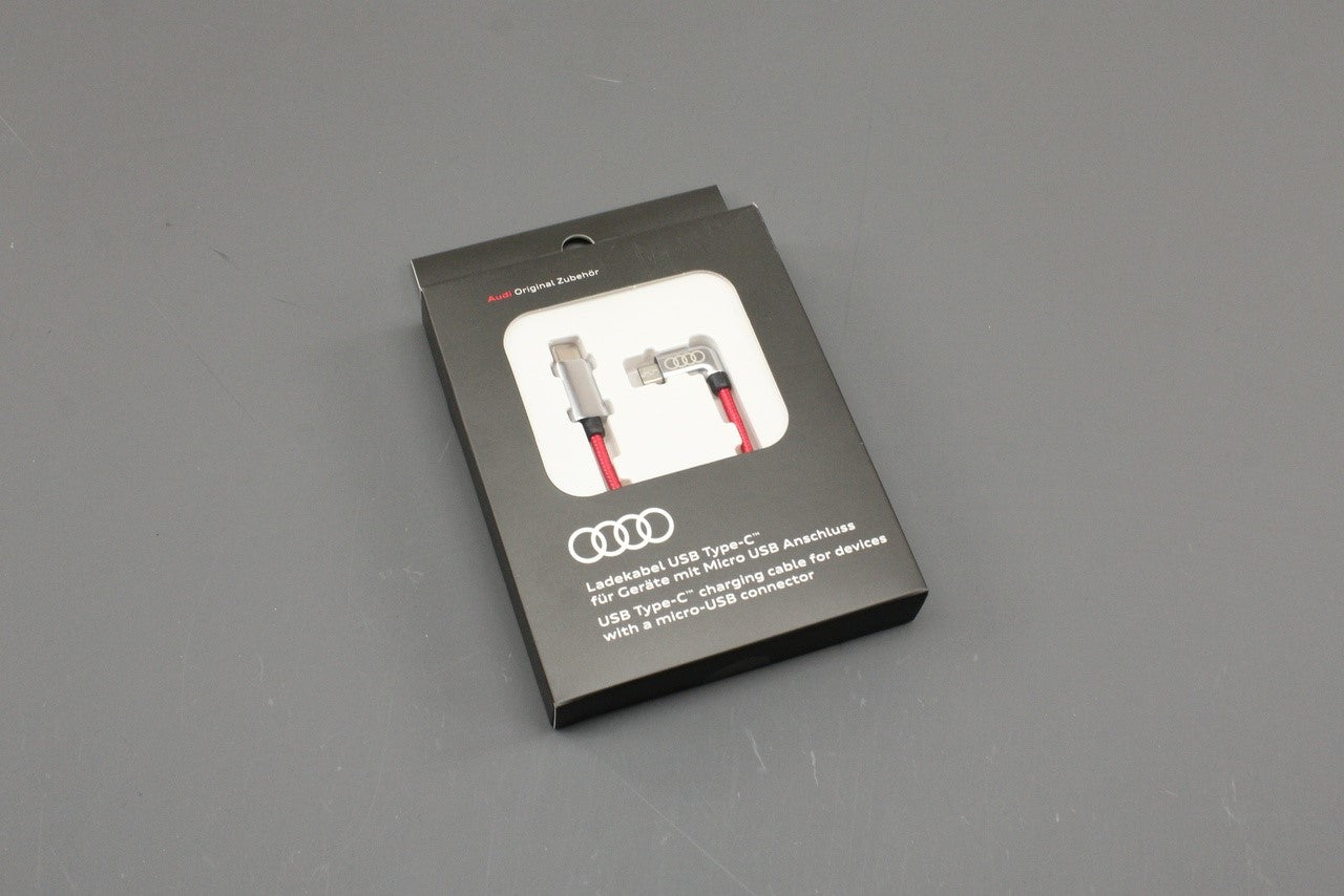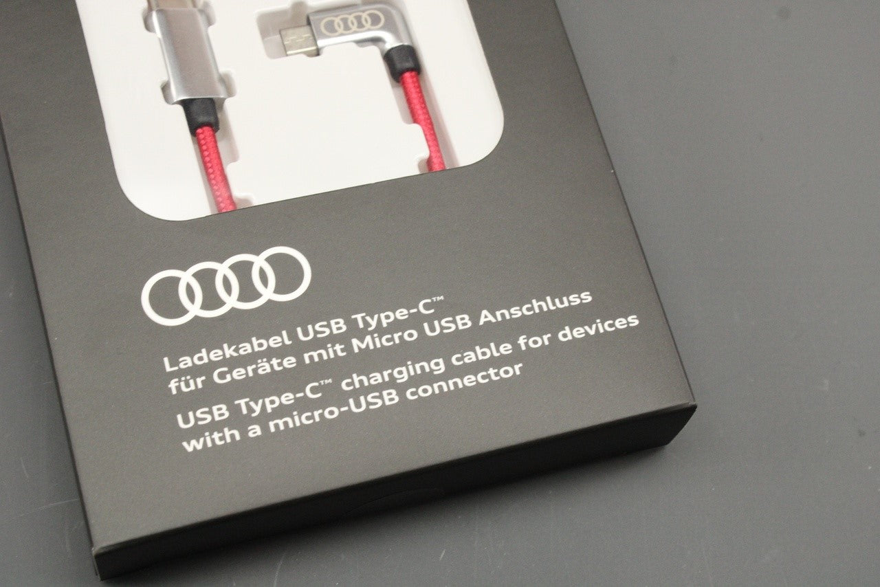 Audi USB-C to micro-USB charging cable (red/silver) 8S0051435J is backordered and will ship as soon as it is back in stock.