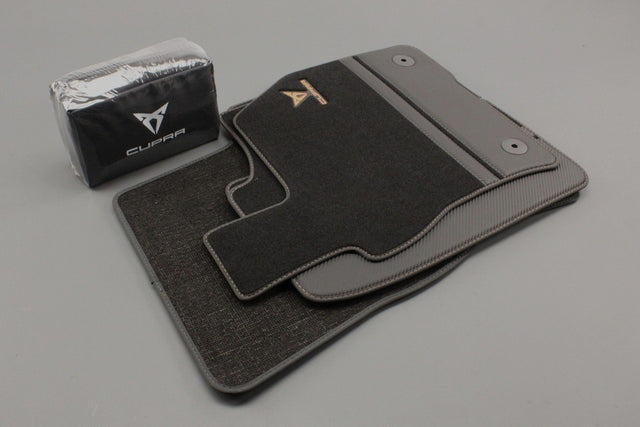 CUPRA Formentor 2021-on front & rear carbon effect floor mats with safety kit 5FH093990B