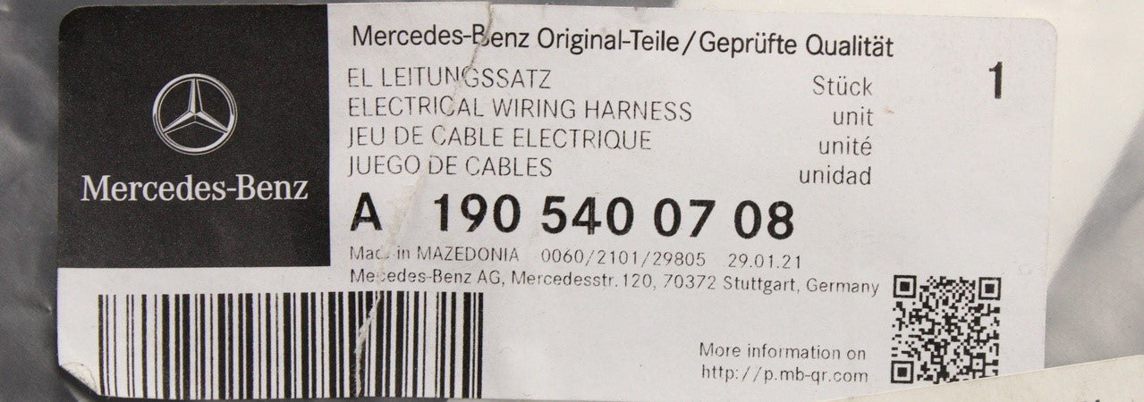 Mercedes-Benz AMG GT C190 reversing camera wiring harness A1905400708 is backordered and will ship as soon as it is back in stock.
