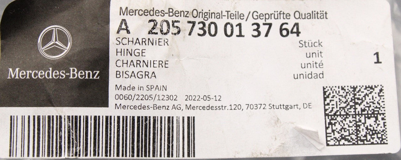 Mercedes-Benz C-Class W205 upper rear door hinge (left) A205730013764 is backordered and will ship as soon as it is back in stock.