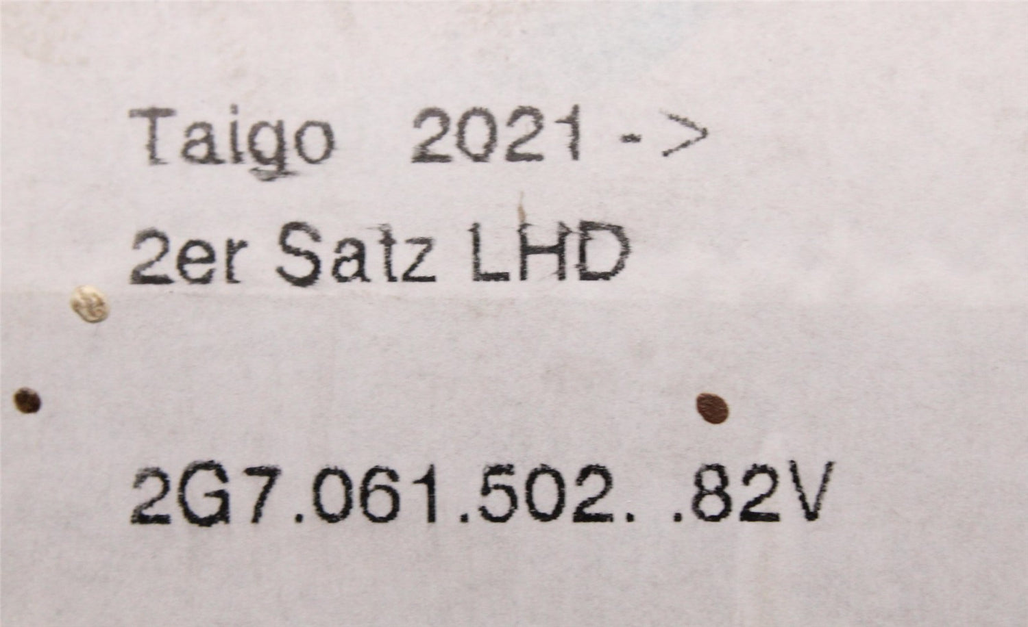 Part Number 2G7061502 82V