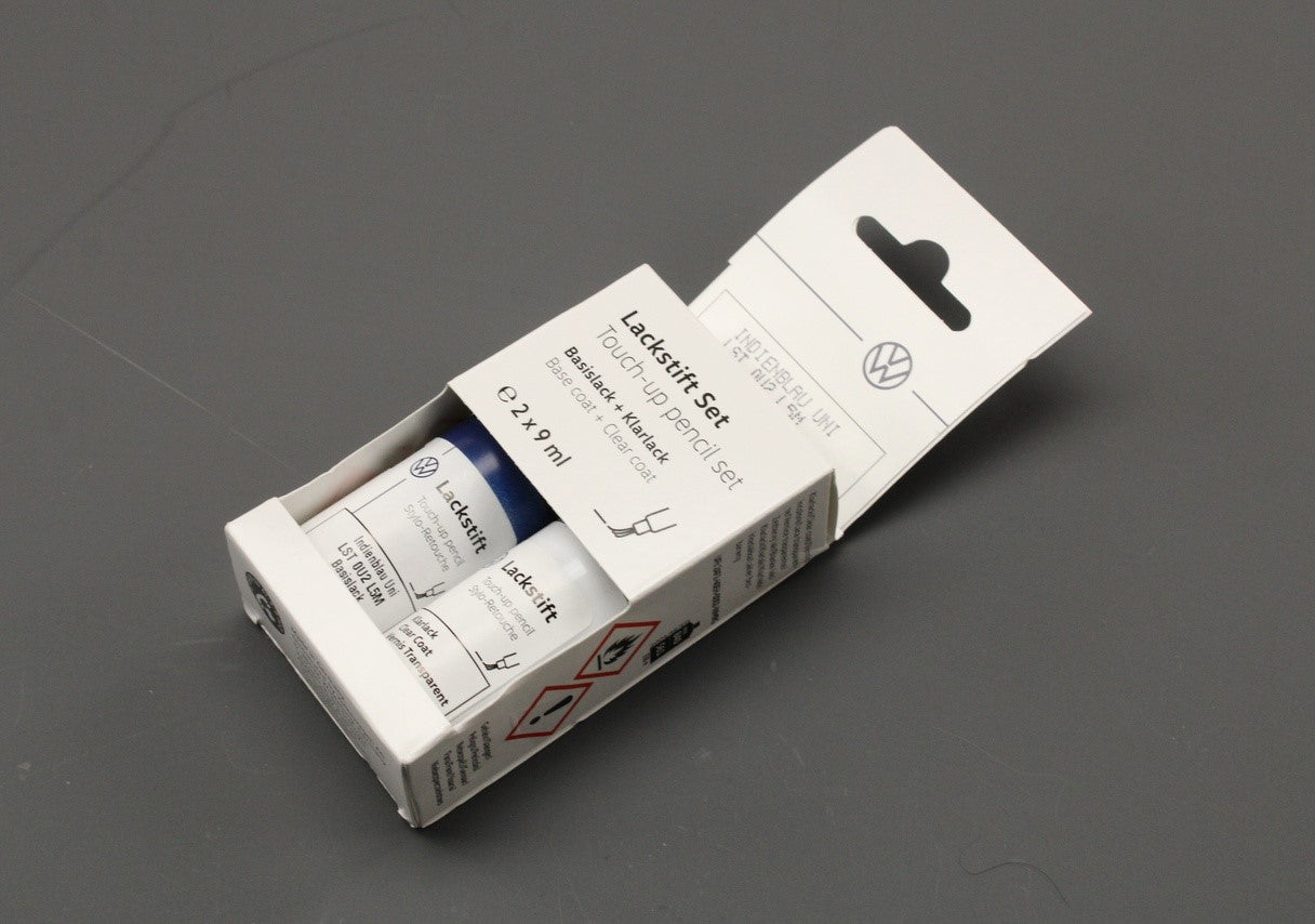 VW touch up paint set x2 9ml Indian blue LST0U2L5M is backordered and will ship as soon as it is back in stock.