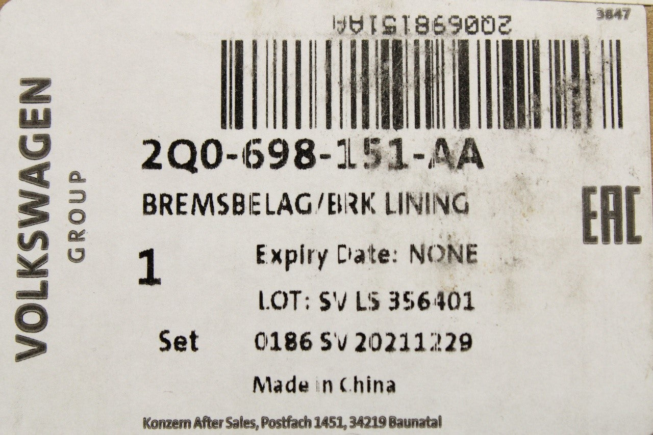 VW Polo 18-on T-Cross 276mm brake pads set (front) 2Q0698151AA is backordered and will ship as soon as it is back in stock.