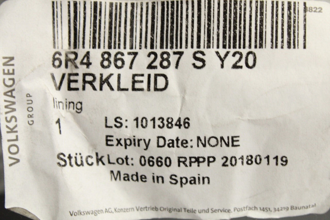 VW Polo 6R 10-14 6C 15-18 interior c-pillar trim (left) 6R4867287S Y20 is backordered and will ship as soon as it is back in stock.