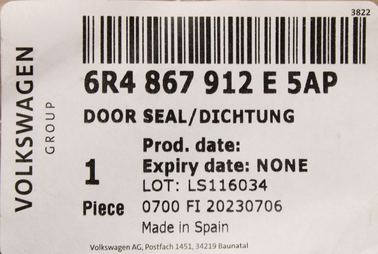VW Polo 6R 6C 2013-2018 inner door seal (front right) 6R4867912E 5AP is backordered and will ship as soon as it is back in stock.