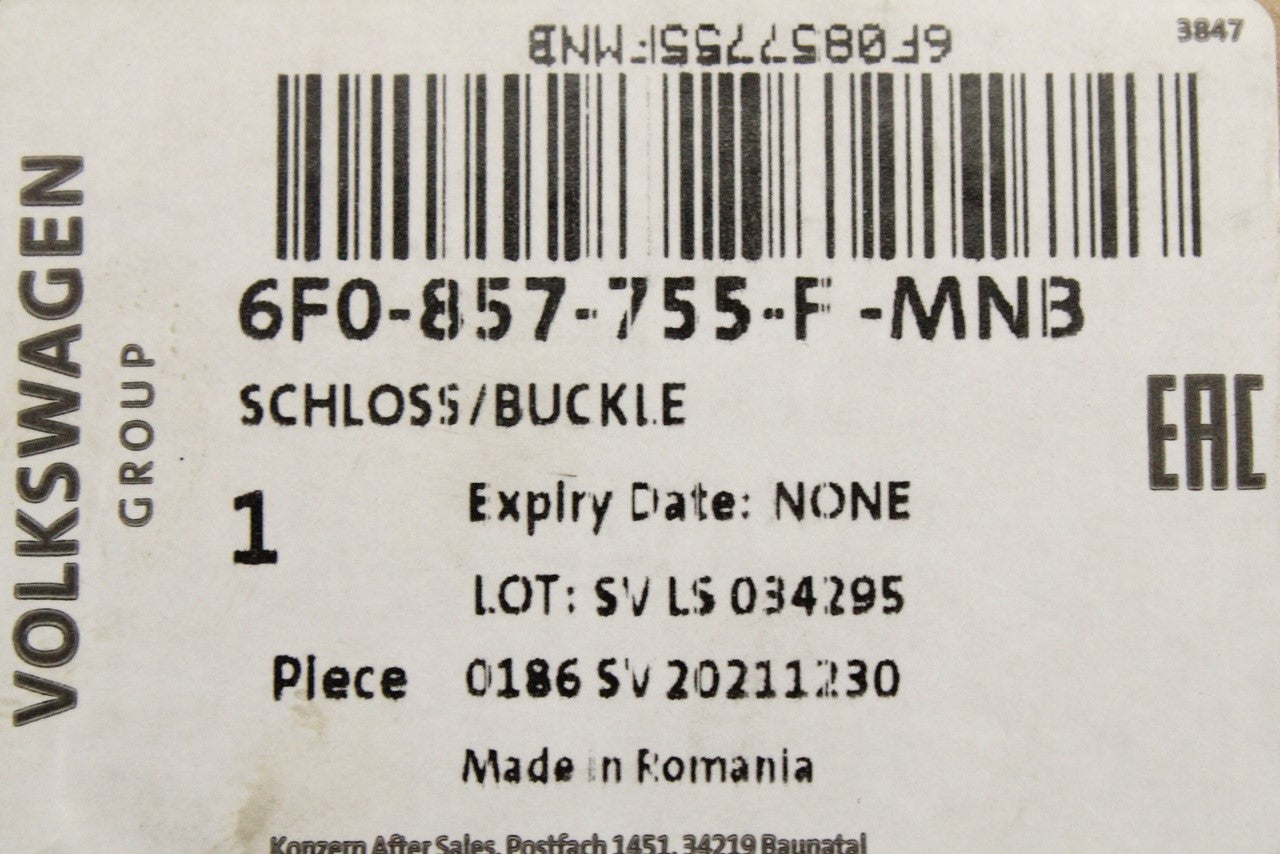 VW Polo AW 18-on Audi A1 19-on seat belt latch (left) 6F0857755F MNB
