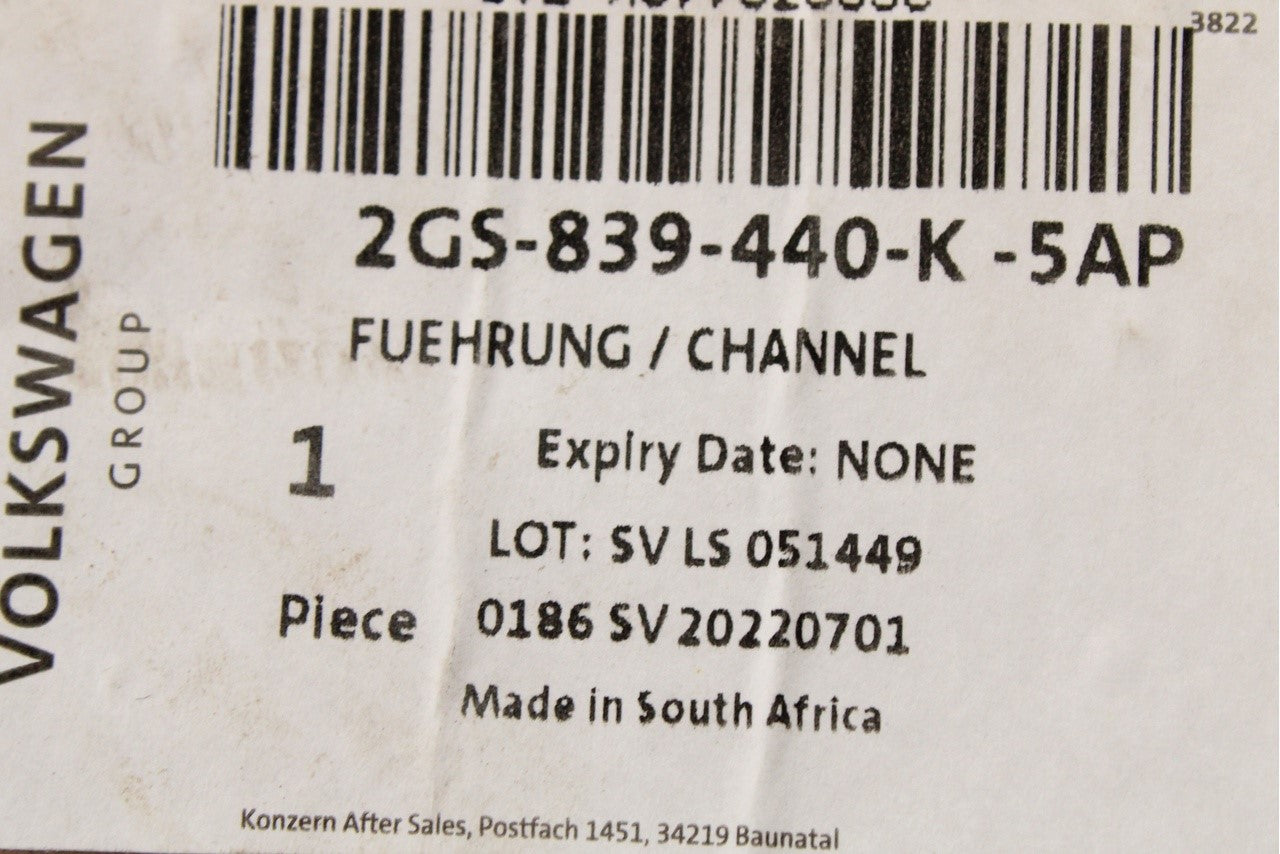 VW Polo AW 2018-on window guide seal (rear right) 2GS839440K 5AP
