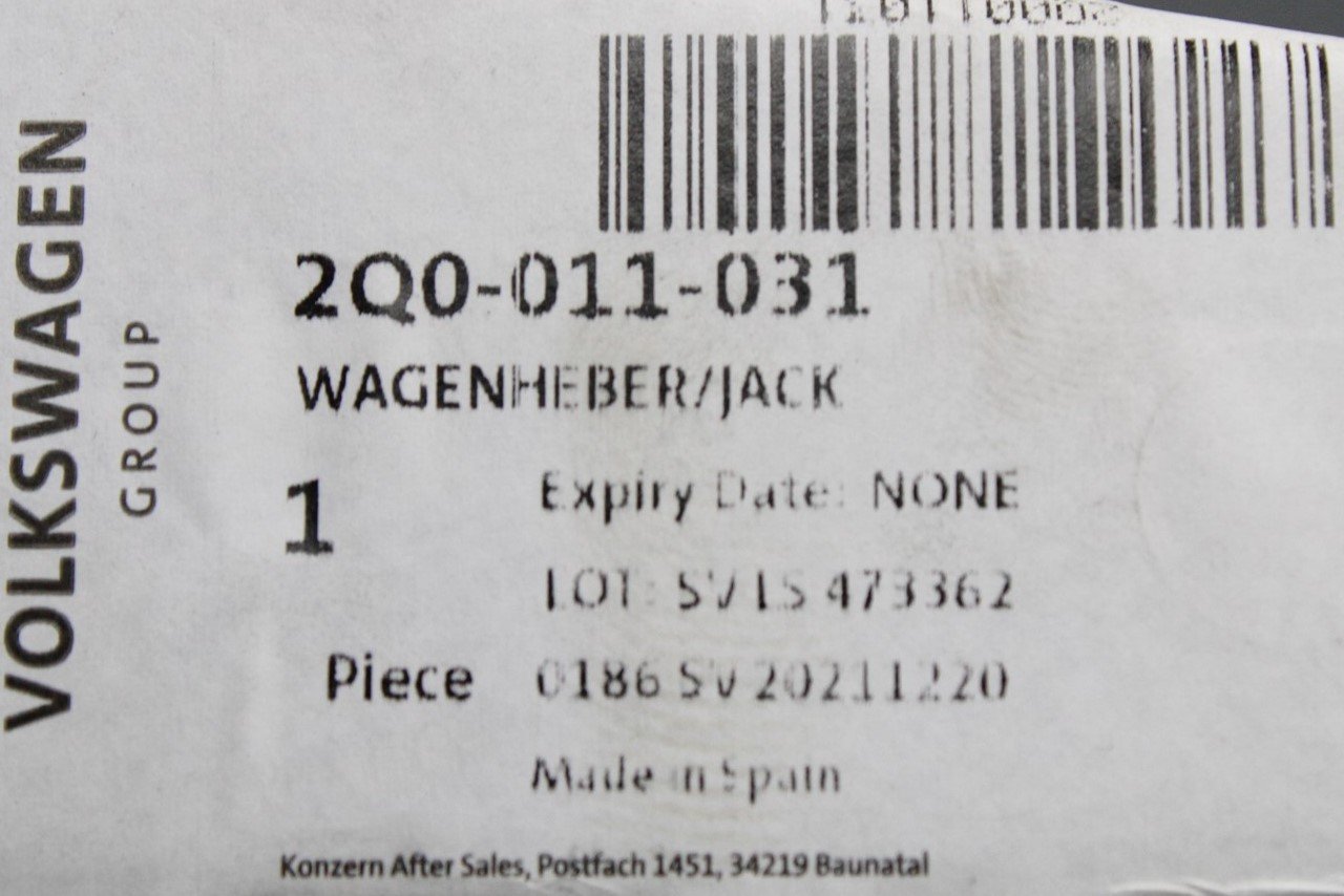 VW Polo Audi A1 Skoda SEAT Ibiza spare wheel jack with handle 2Q0011031 is backordered and will ship as soon as it is back in stock.