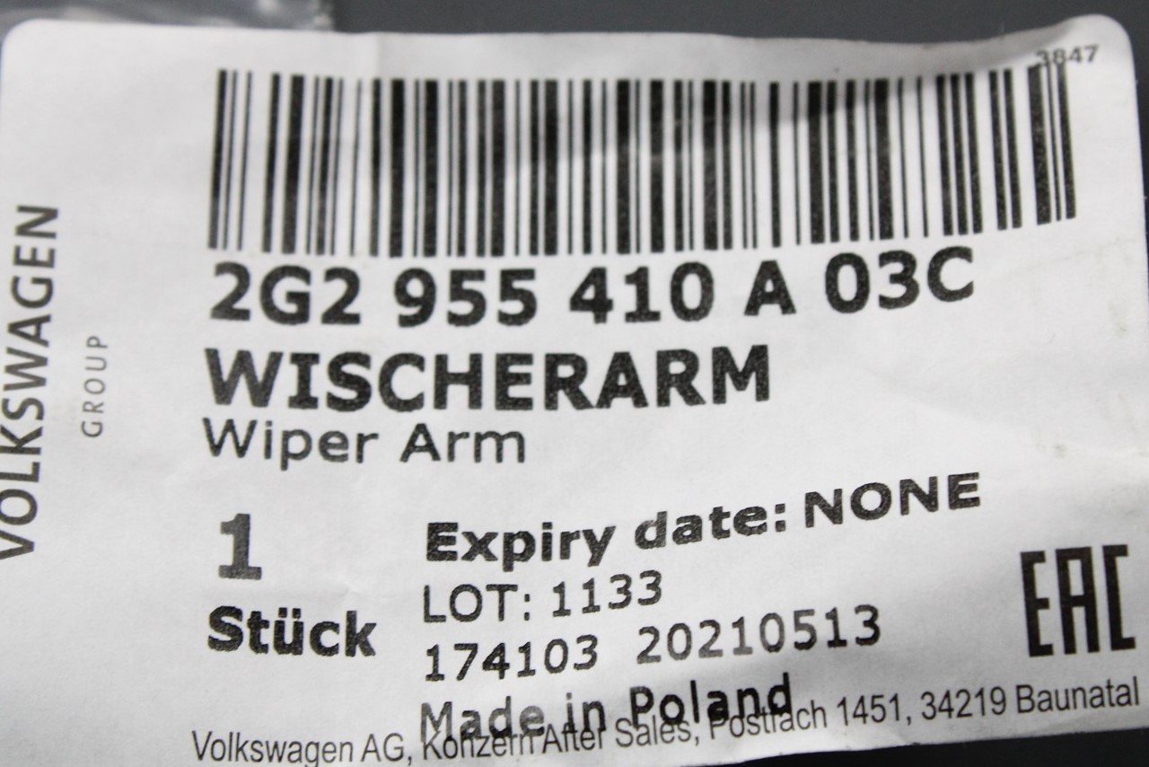 VW Polo AW 2018-on RHD windscreen wiper arm (front right) 2G2955410A 03C is backordered and will ship as soon as it is back in stock.
