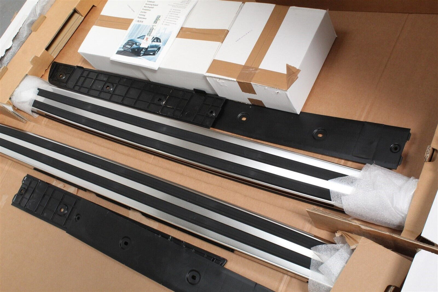 - Left & right running boards with fixings and fitting guides