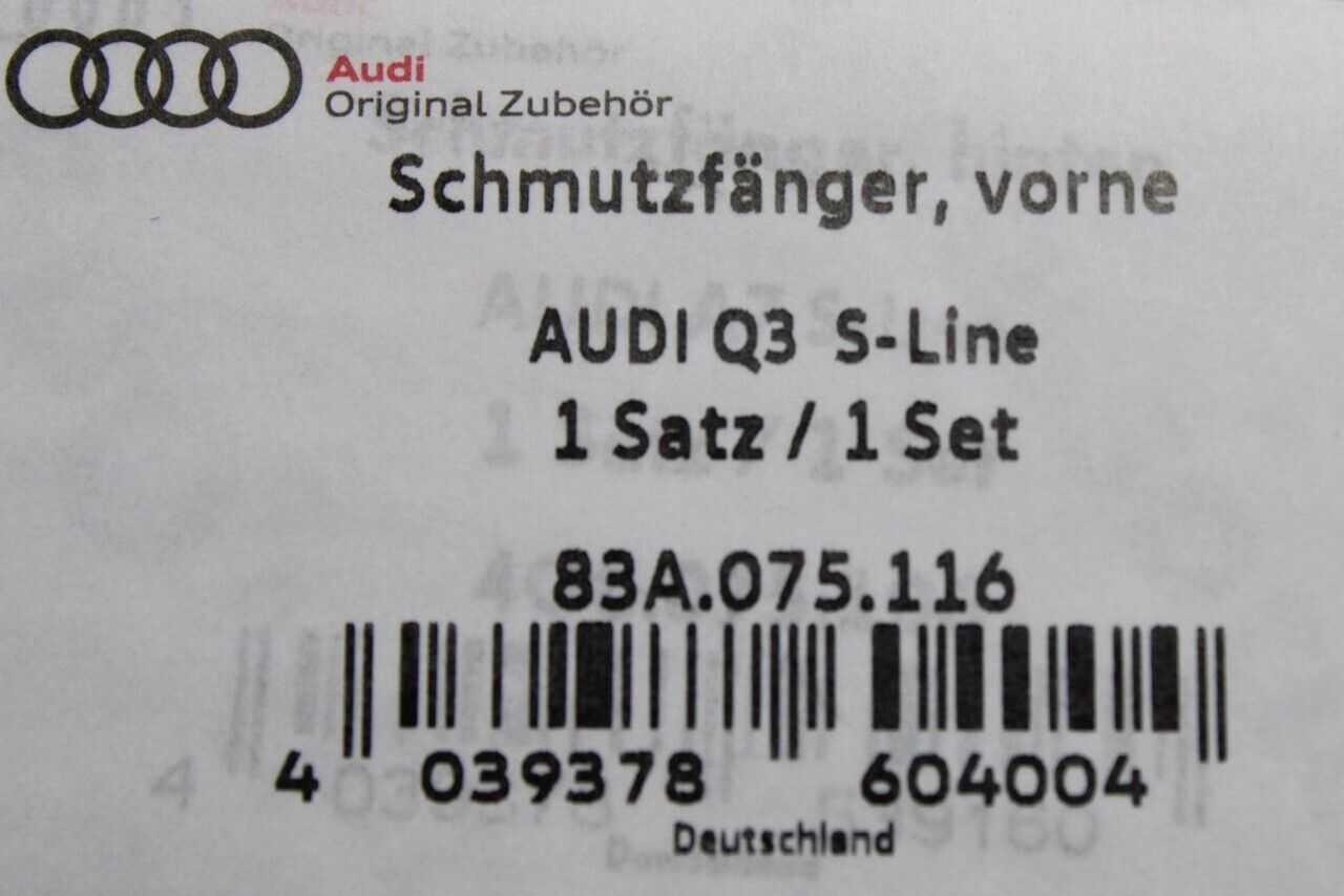 Audi Q3 2019-on S-Line package mud flaps (front) 83A075116 is backordered and will ship as soon as it is back in stock.